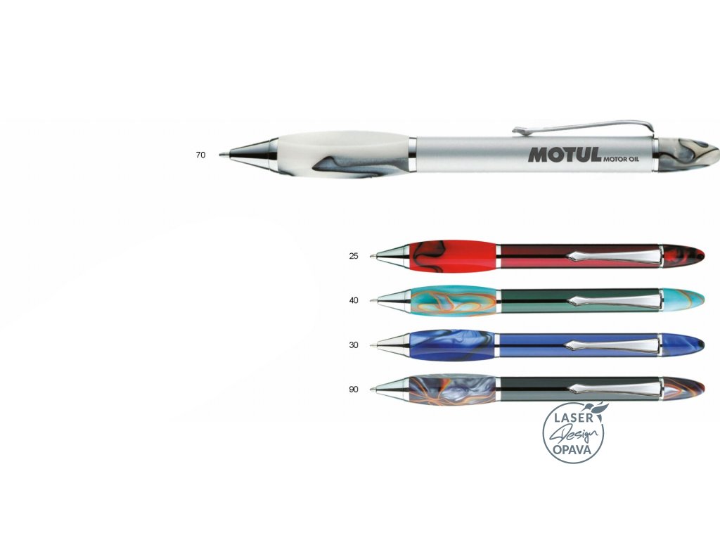 Kovové kuličkové pero. Služba laserové gravírování se na propisce zobrazuje ve zlaté barvě.